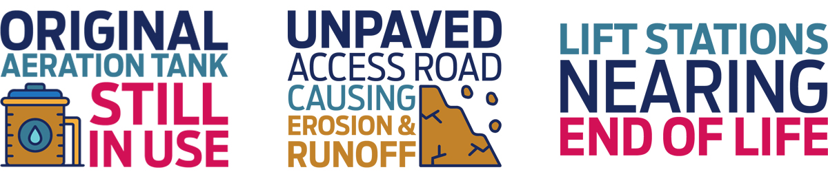 - The MUD’s lift stations are at or past their useful lifespan, requiring recoating, pump replacement, and recoating of ground piping.